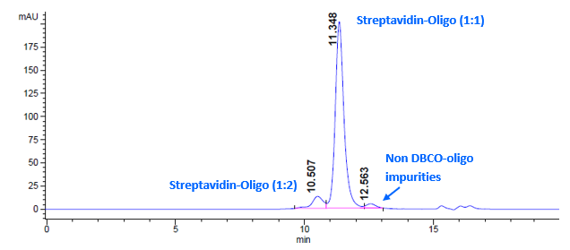 A single purification affords 85-90% single-labeled streptavidin-oligo conjugates if the quality of the oligo is at par.